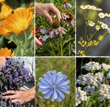 Chicory, Yarrow, California Poppy, Marshmallow, Chamomile, Evening Primrose, Lavender, Calendula, Echinacea and Peppermint